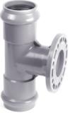 Тройник с ПВХ фланцем. Тройник ПВХ с ПВХ фланцем имеет с двух сторон раструб под соединение с помощью резинового уплотнительного кольца и ПВХ фланец с присоединительными размерами по ГОСТу 12815-80. Используются для устройства разветвлений сетей трубопровода из ПВХ труб, стыковки с трубами из других материалов, соединения с запорной арматурой посредством ПВХ фланца. Синонимы: тройник с фланцем для систем напорного водопровода, тройник для напорных труб ПВХ, тройник для напорного трубопровода. Нормативные документы: ГОСТ Р 51613-2000, EN 1452-3. Цвет тройника: темно-серый, оттенки не регламентируются Диаметр тройника: 110/100, 160/100, 160/150, 225/100, 225/150, 225/200, 315/100, 315/150 мм. Рабочее давление MOP: 1,0 МПа (10 атмосфер)